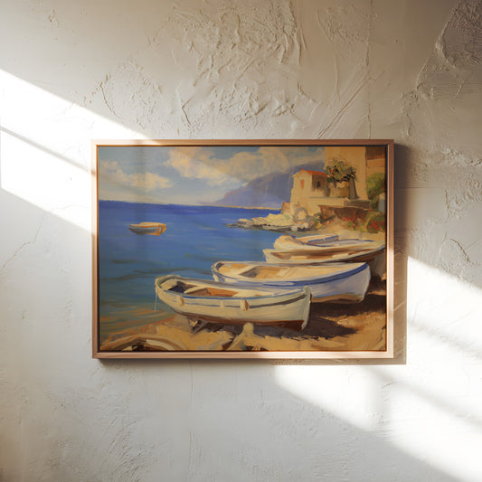 Mediterranean Coastal Boat Scene Horizontal Canvas