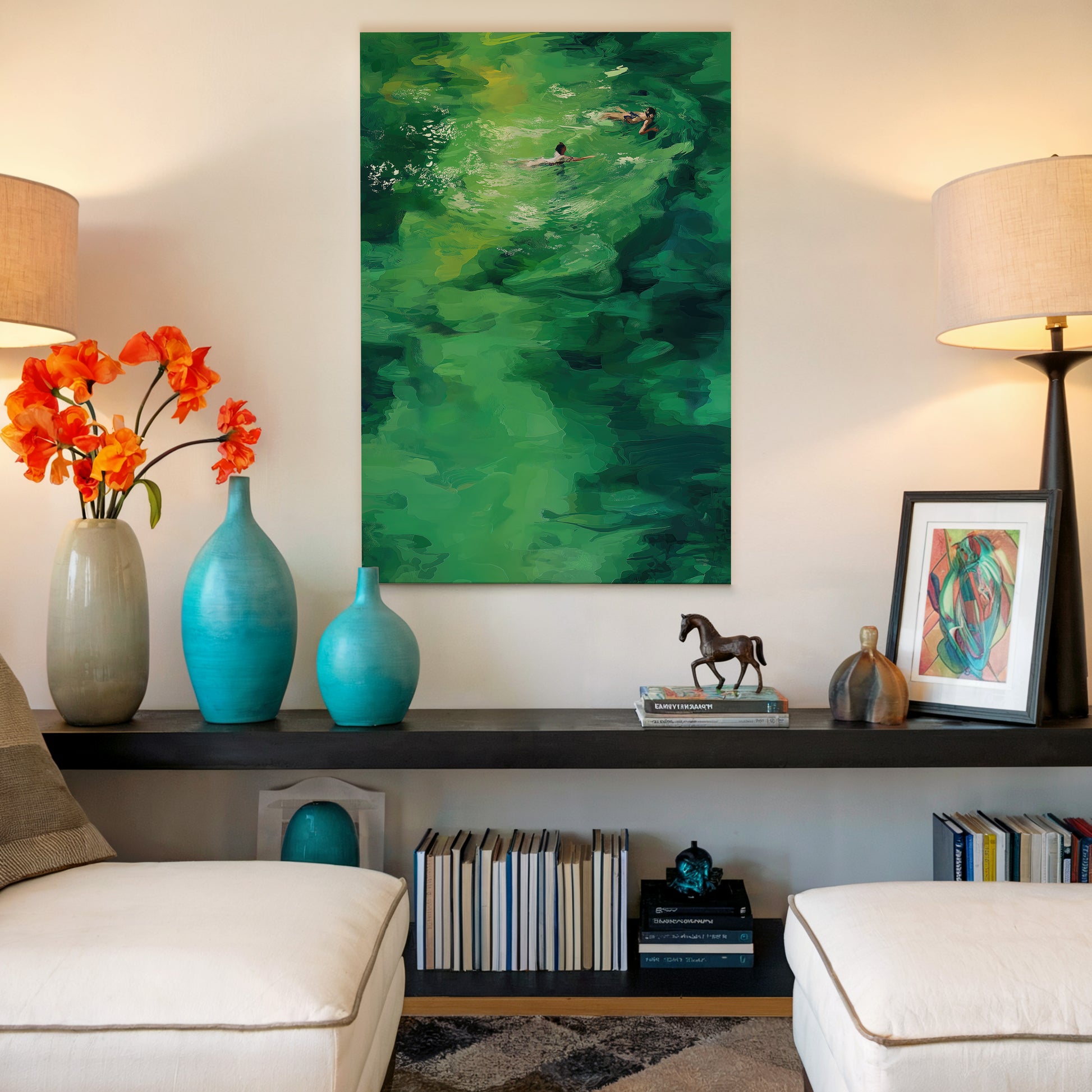 Abstract Watercolor Swimmers Vertical Canvas Print
