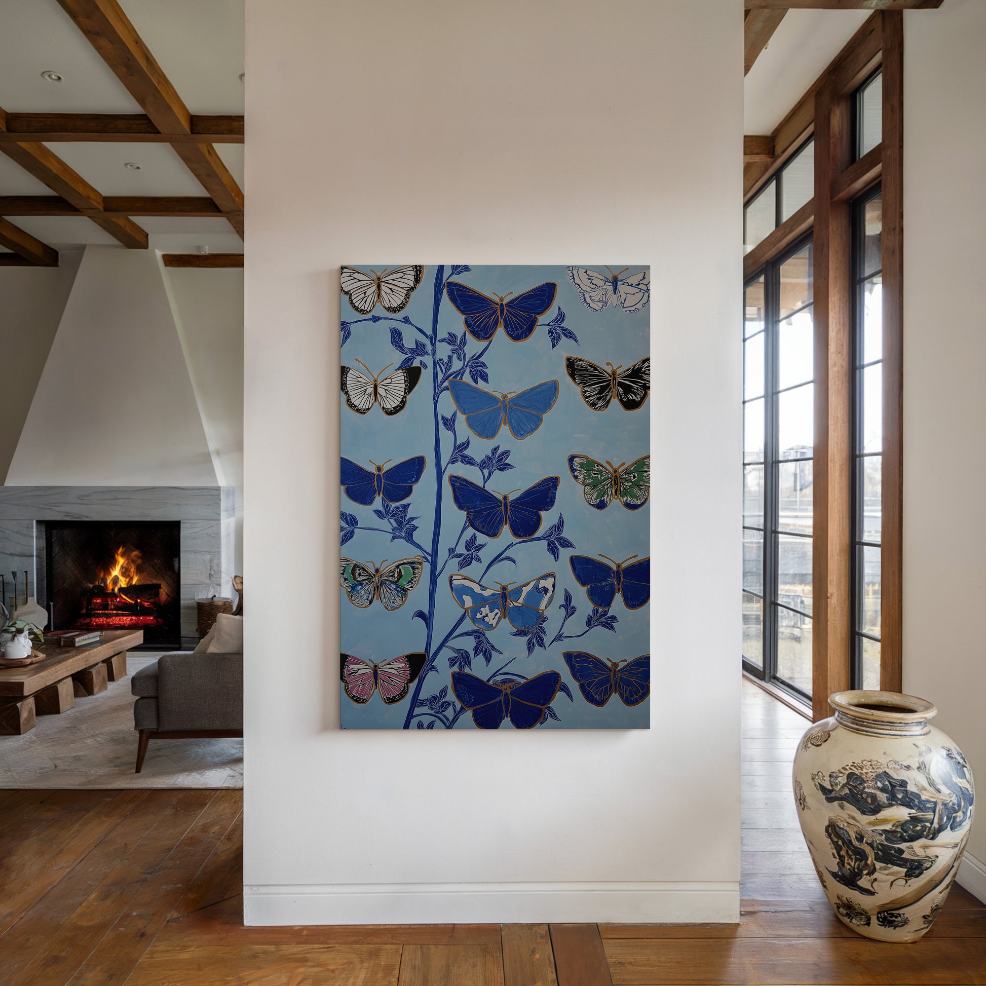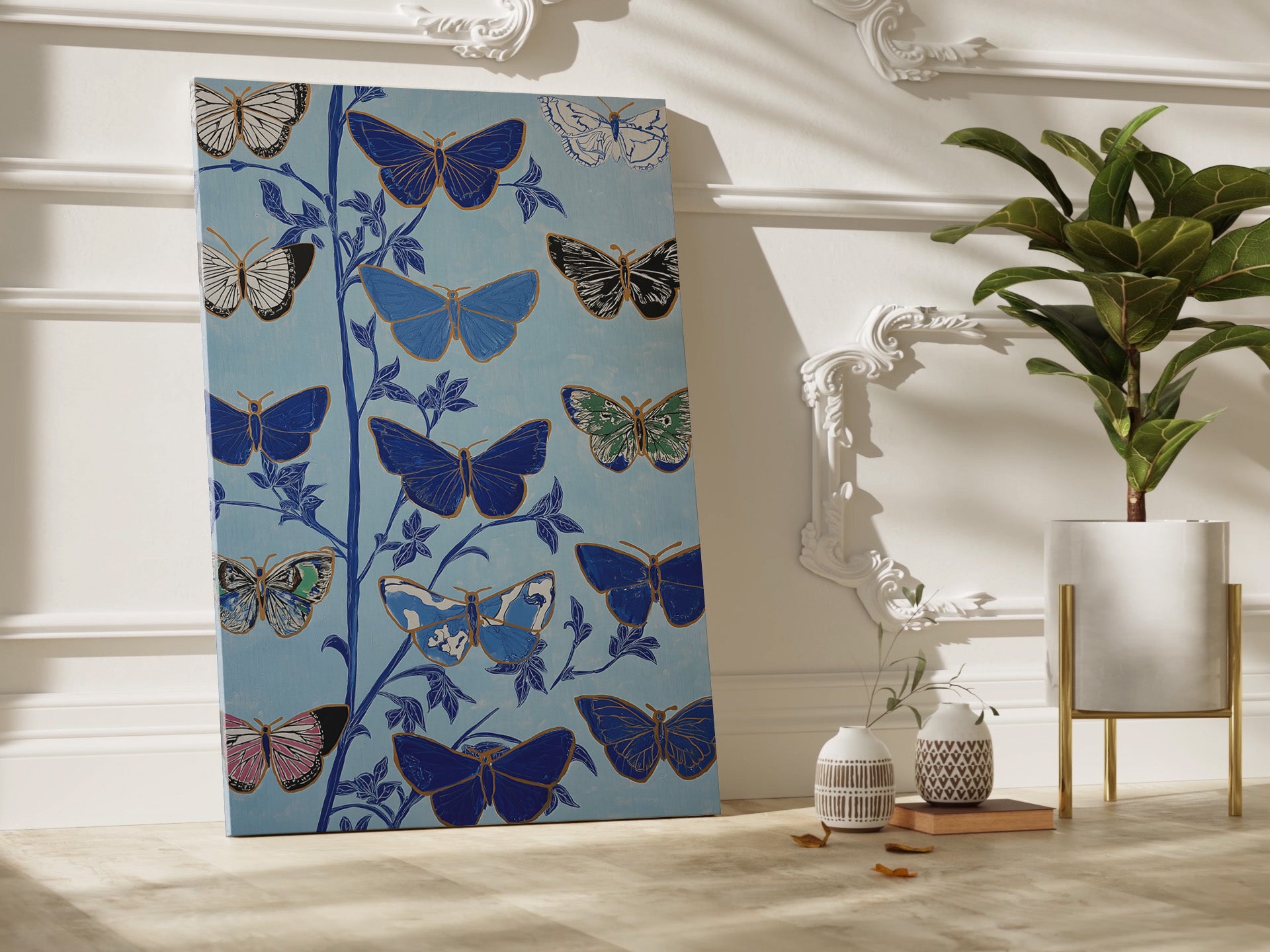 Butterfly Botanical Canvas Print: Vertical Premium Wall Art