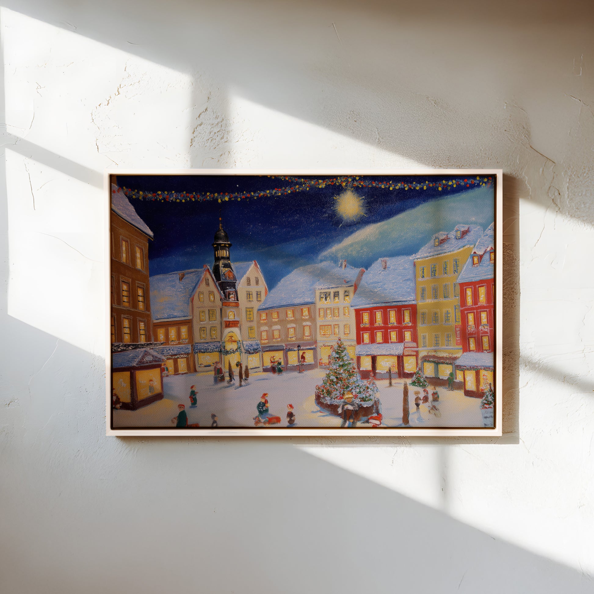 Christmas Village Canvas Print: Snow-Covered European Town Square