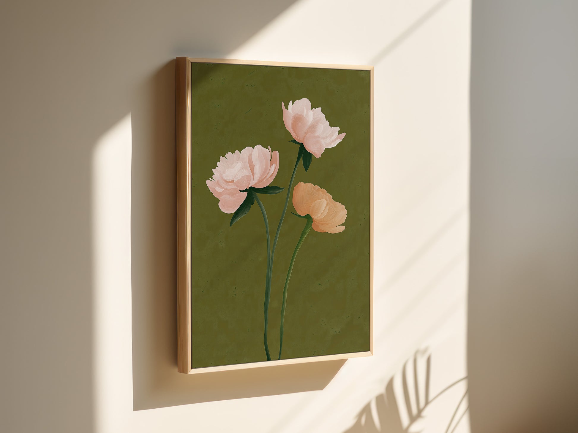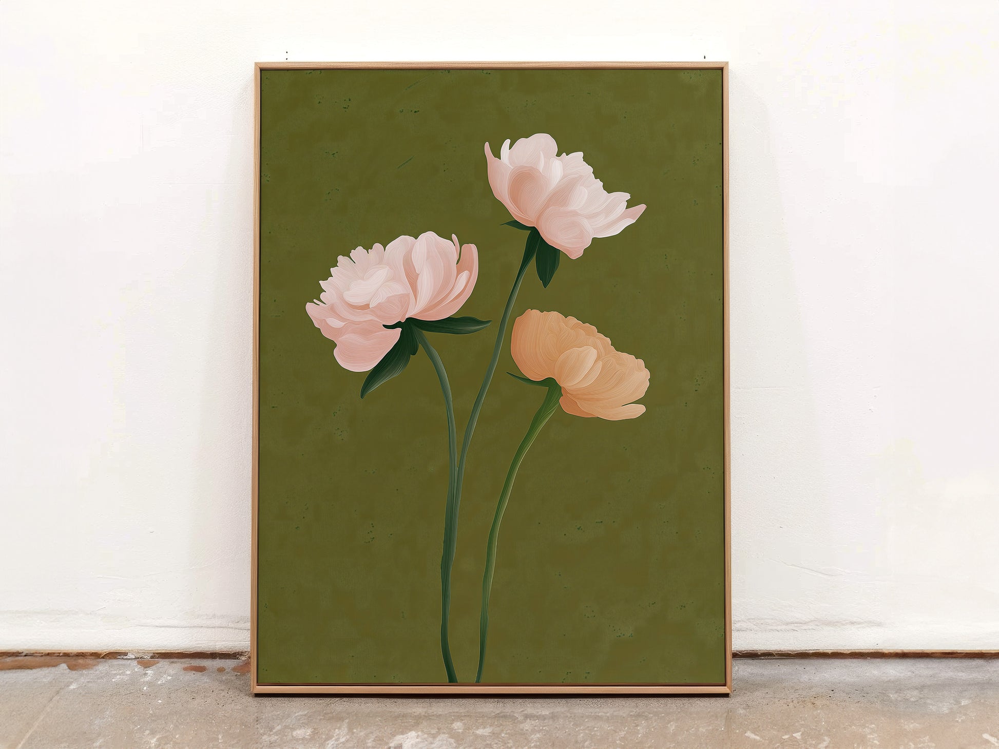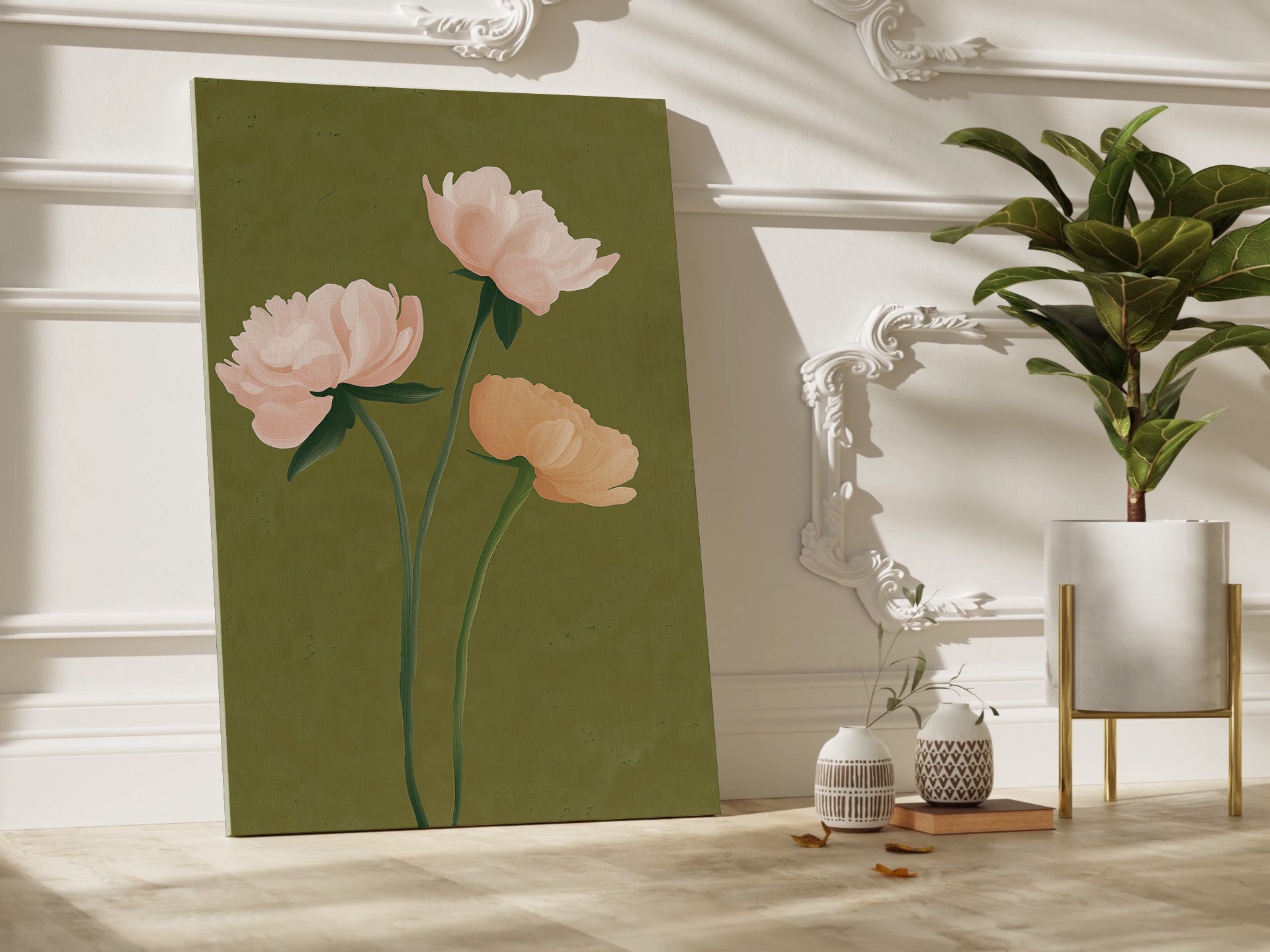 Elegant Peony Floral Canvas Print: Green Backdrop